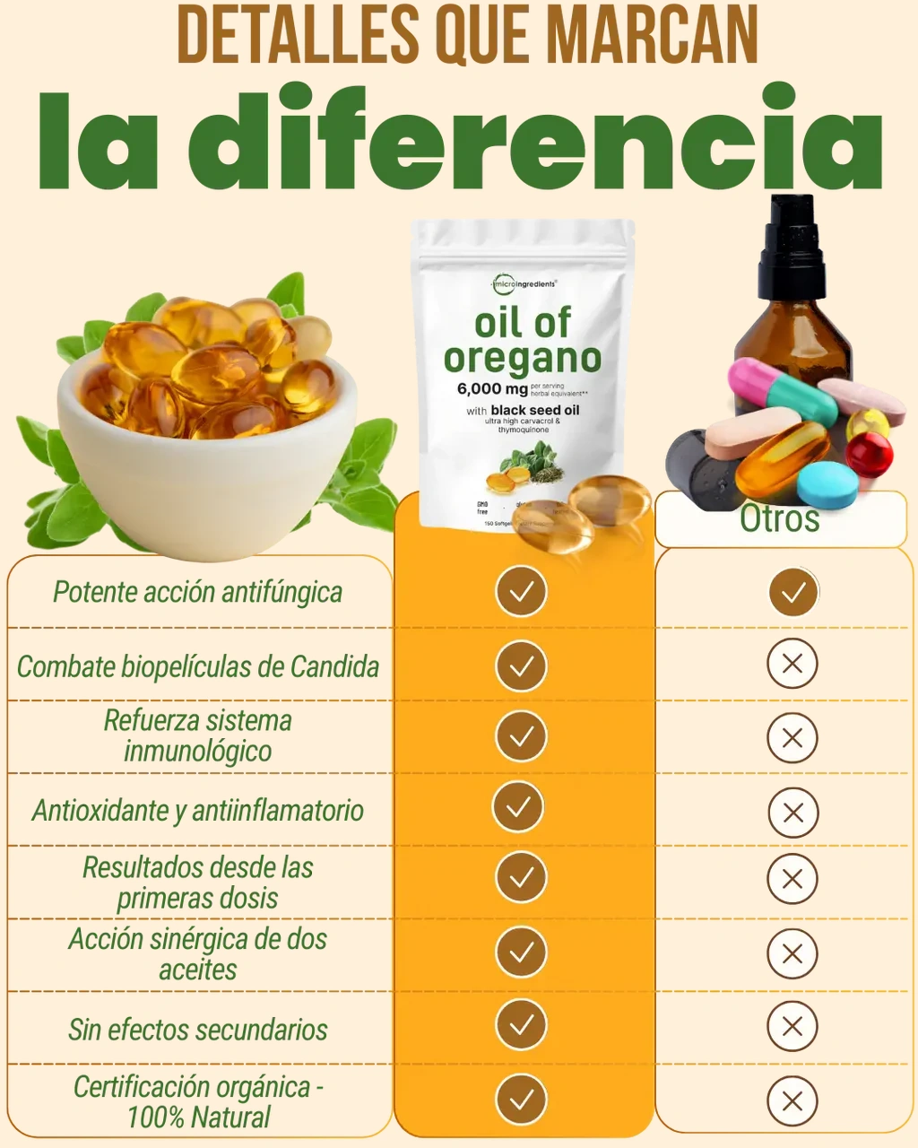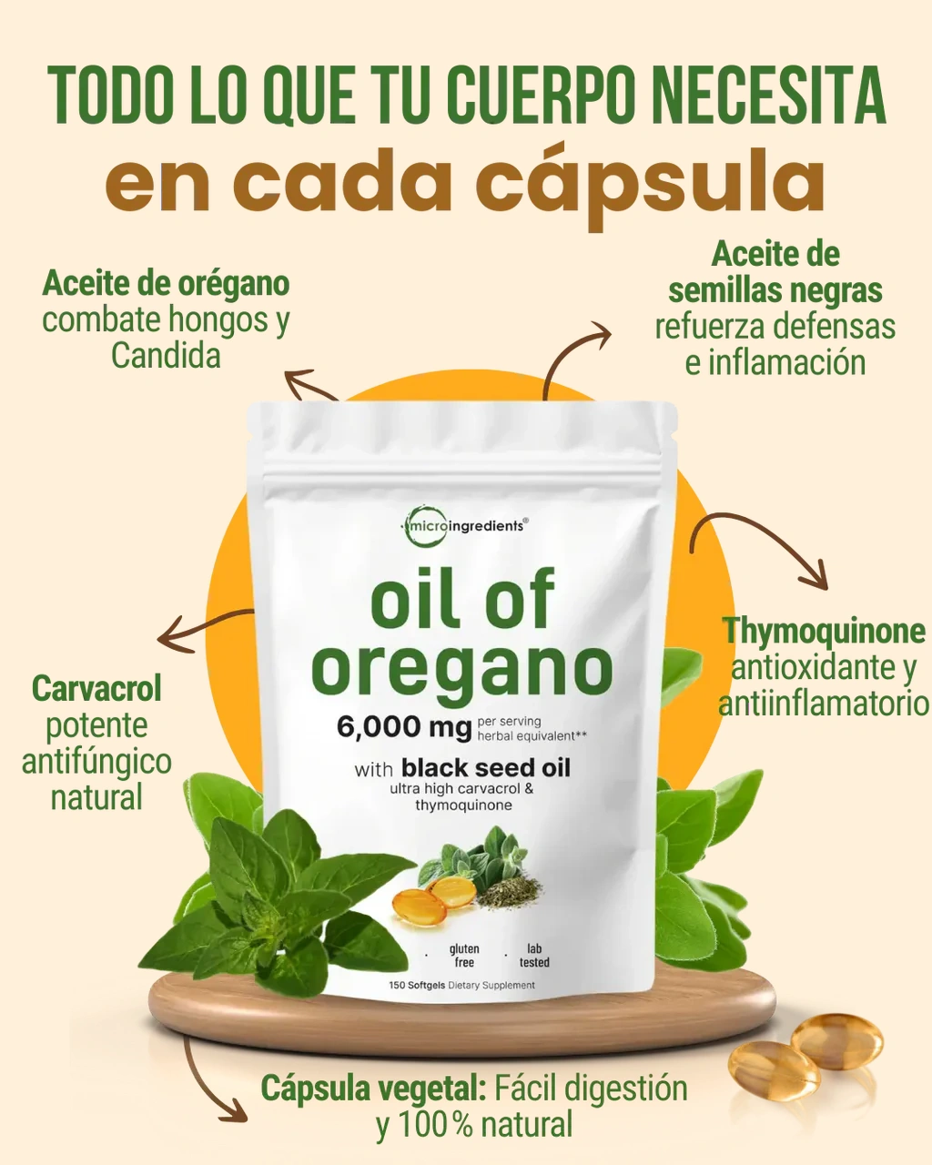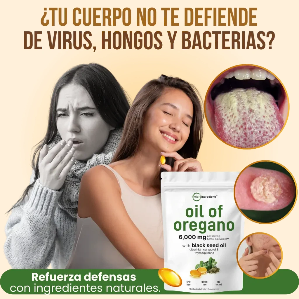 Cuando tu sistema inmunológico está débil, es más fácil enfermarse y sufrir infecciones constantes. No dejes que bacterias, hongos o Candida afecten tu bienestar. Fortalece tus defensas de manera natural y efectiva con aceite de orégano y semillas negras, y recupera tu energía y protección diaria.